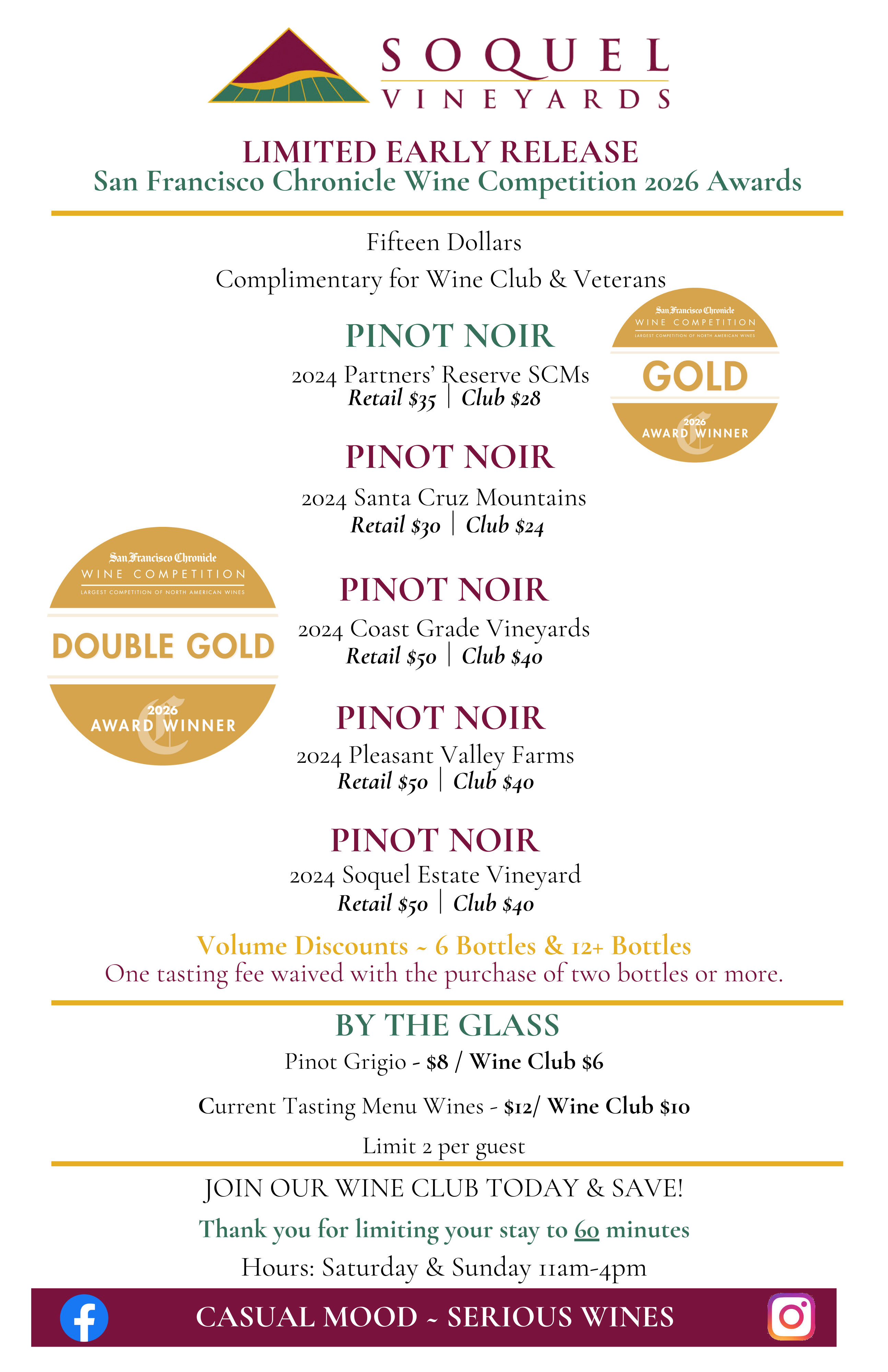 ' Current Tasting Menu - Soquel Vineyards